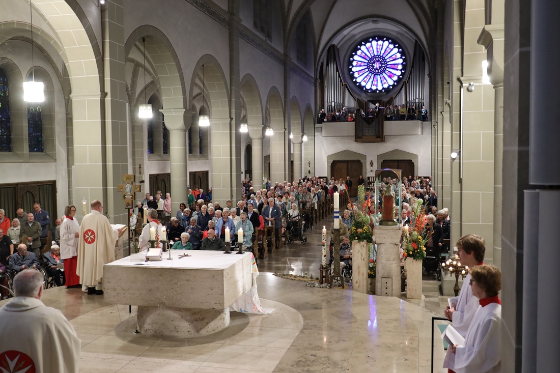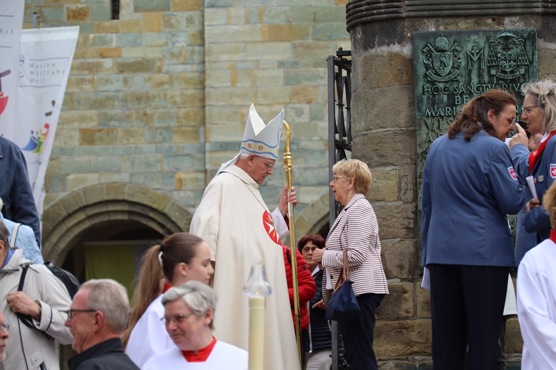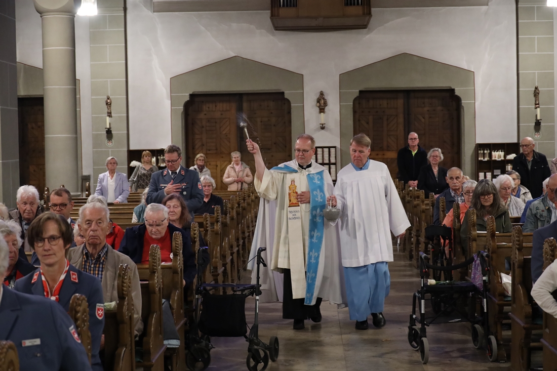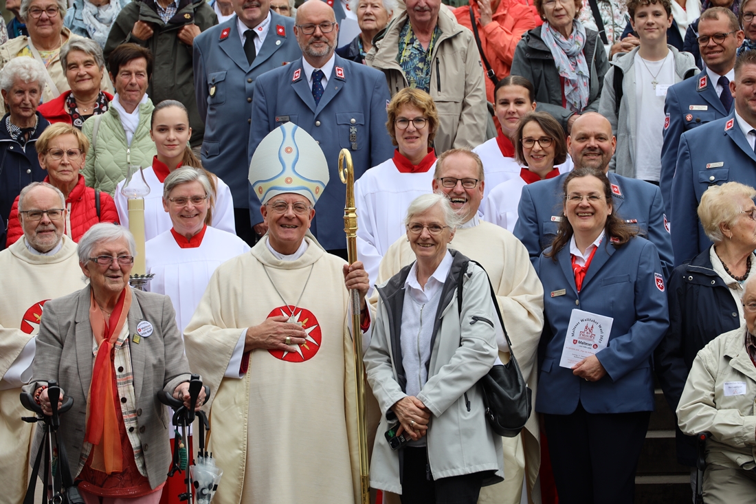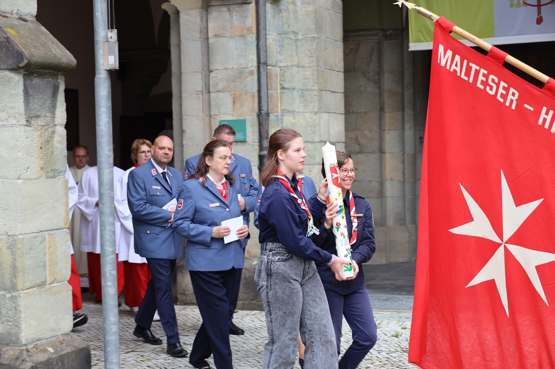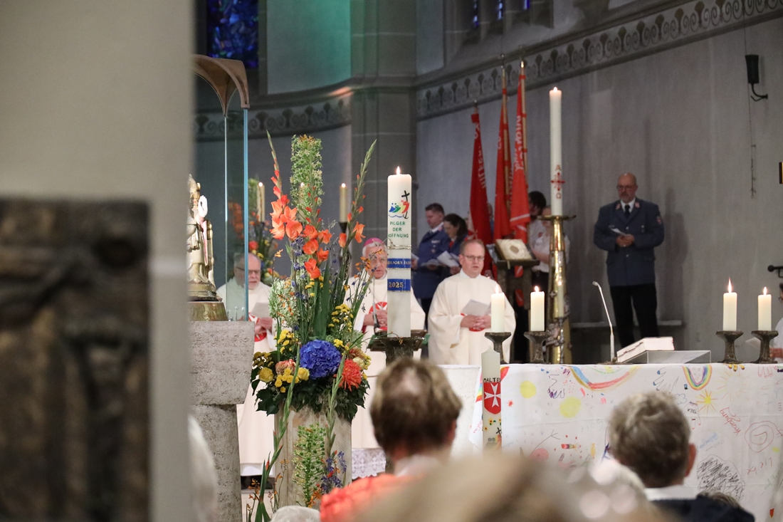 Höhepunkt der Wallfahrt war die Festmesse um 10 Uhr in der Basilika, die von Weihbischof Matthias König aus Paderborn zusammen mit Pastor Mockenhaupt gefeiert wurde. Dabei brachten die Malteser ihre eigene Wallfahrtskerze zum Altar, die von Weihbischof König gesegnet und entzündet wurde – ein sichtbares Zeichen des gemeinsamen Glaubenswegs.