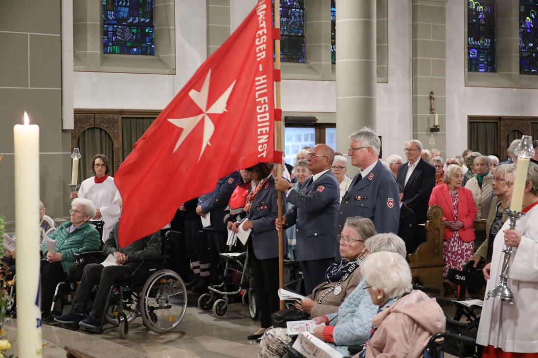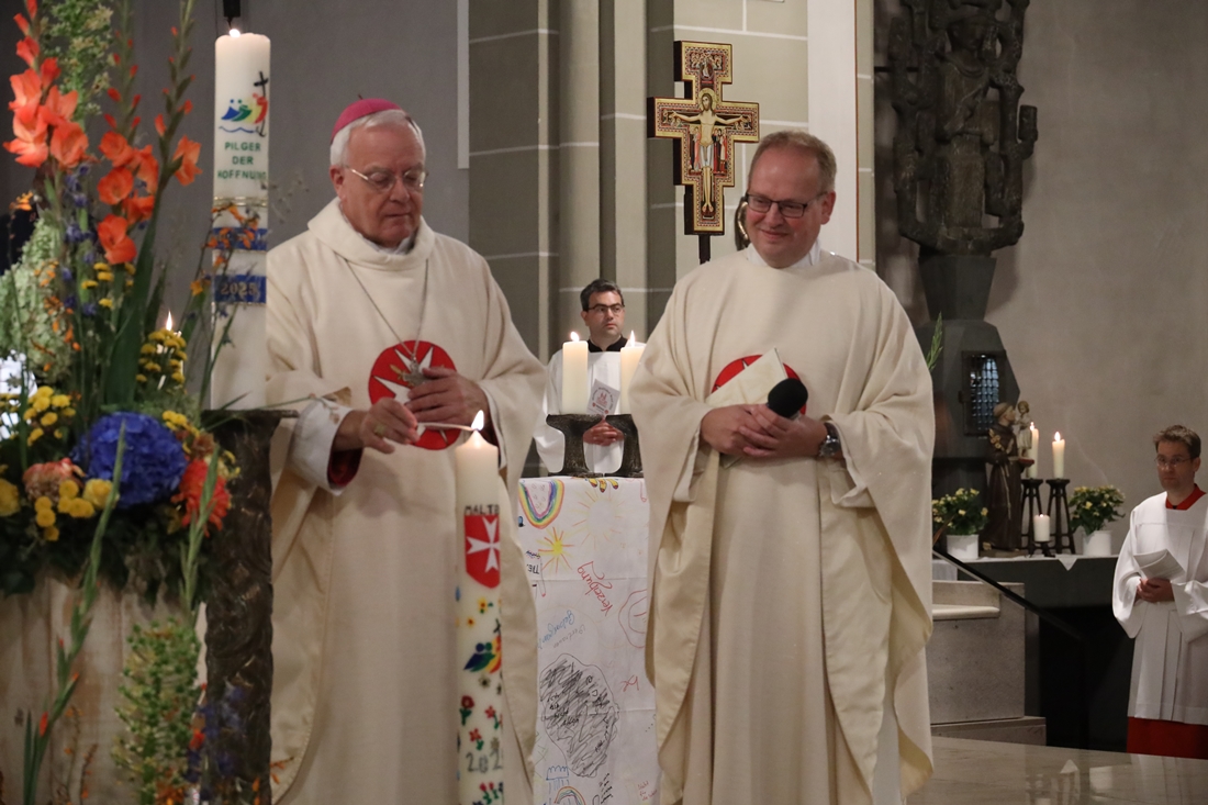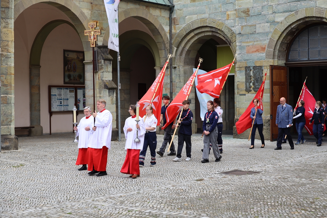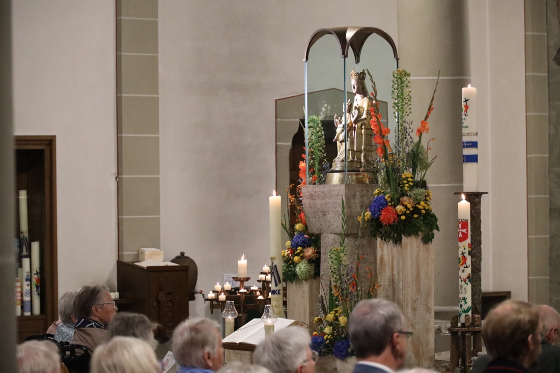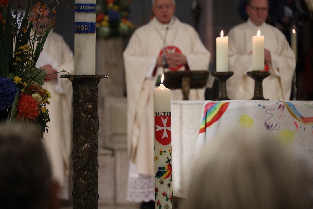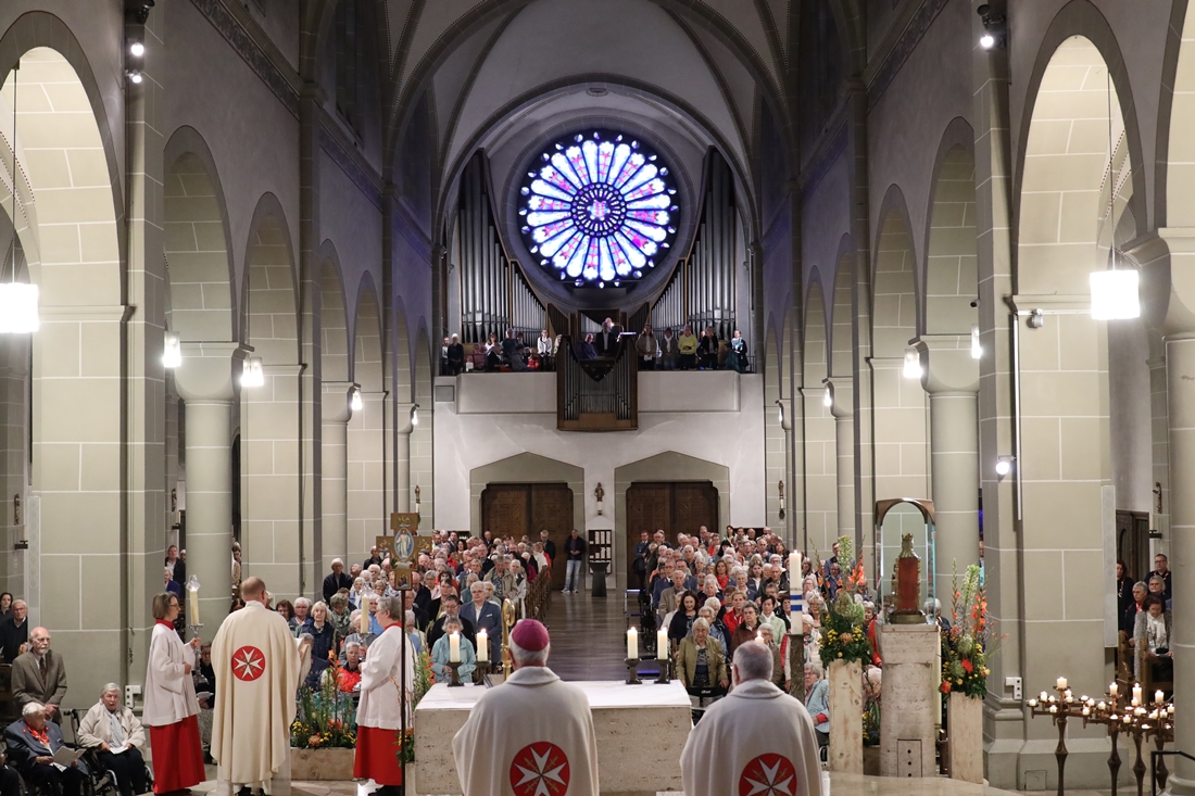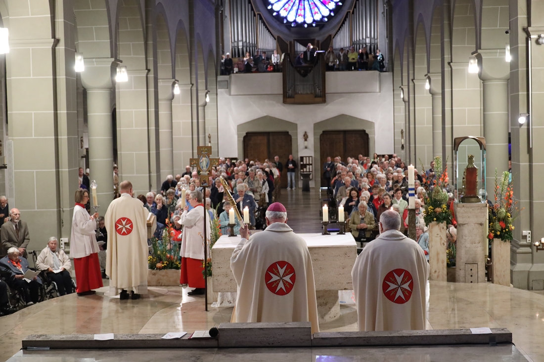 Höhepunkt der Wallfahrt war die Festmesse um 10 Uhr in der Basilika, die von Weihbischof Matthias König aus Paderborn zusammen mit Pastor Mockenhaupt gefeiert wurde. Dabei brachten die Malteser ihre eigene Wallfahrtskerze zum Altar, die von Weihbischof König gesegnet und entzündet wurde – ein sichtbares Zeichen des gemeinsamen Glaubenswegs.