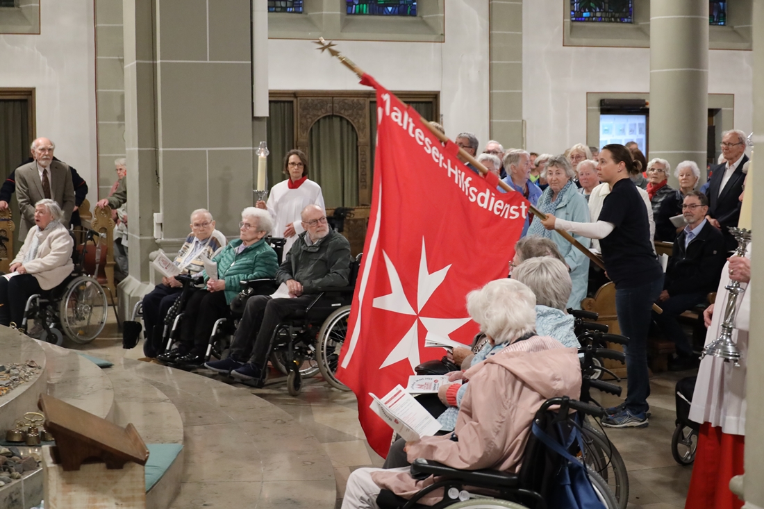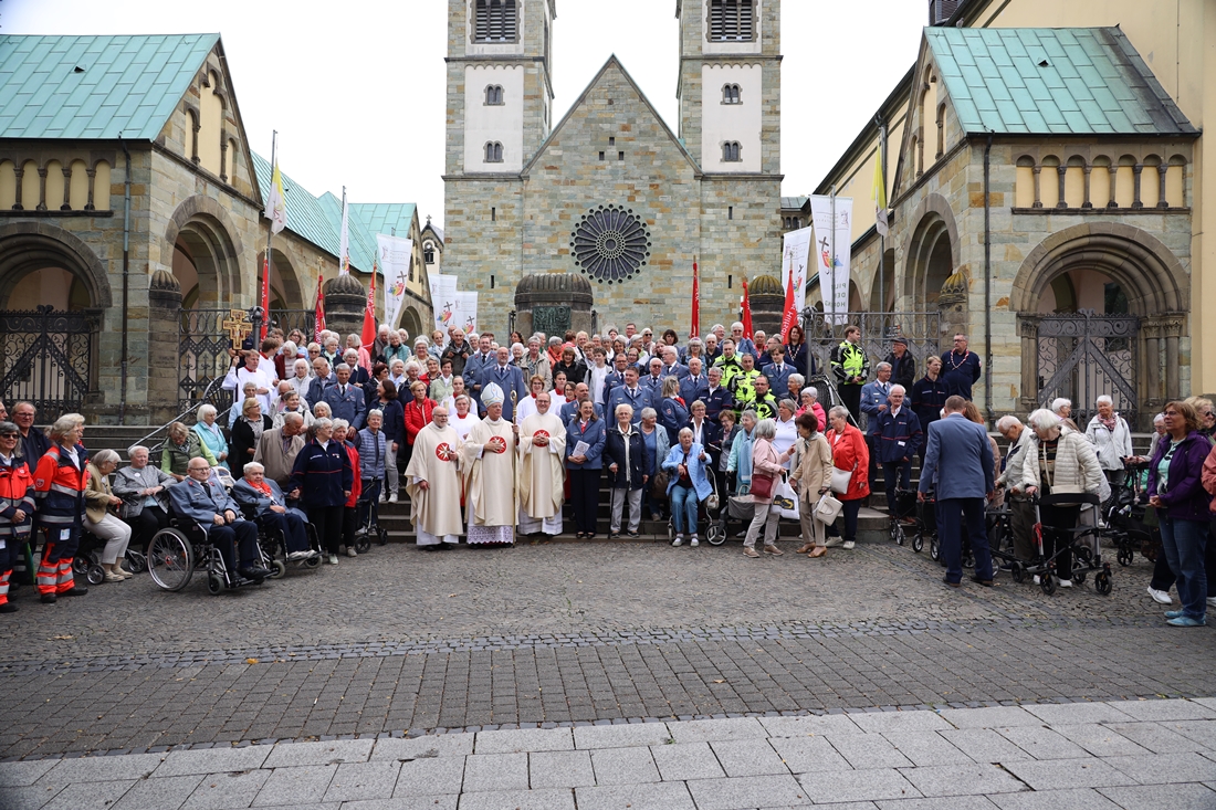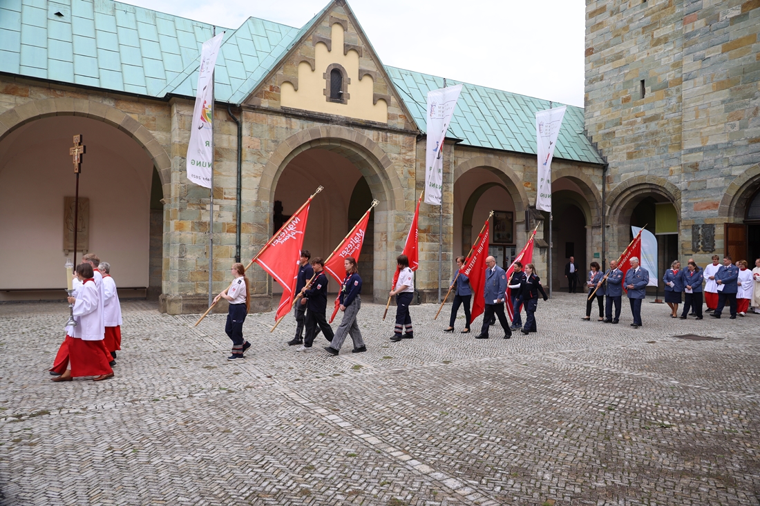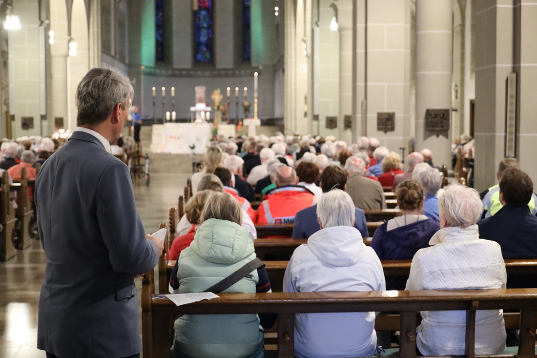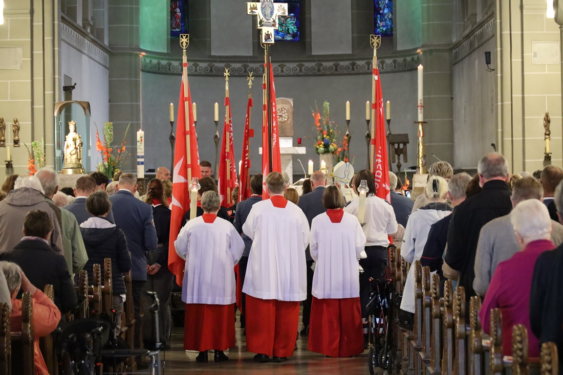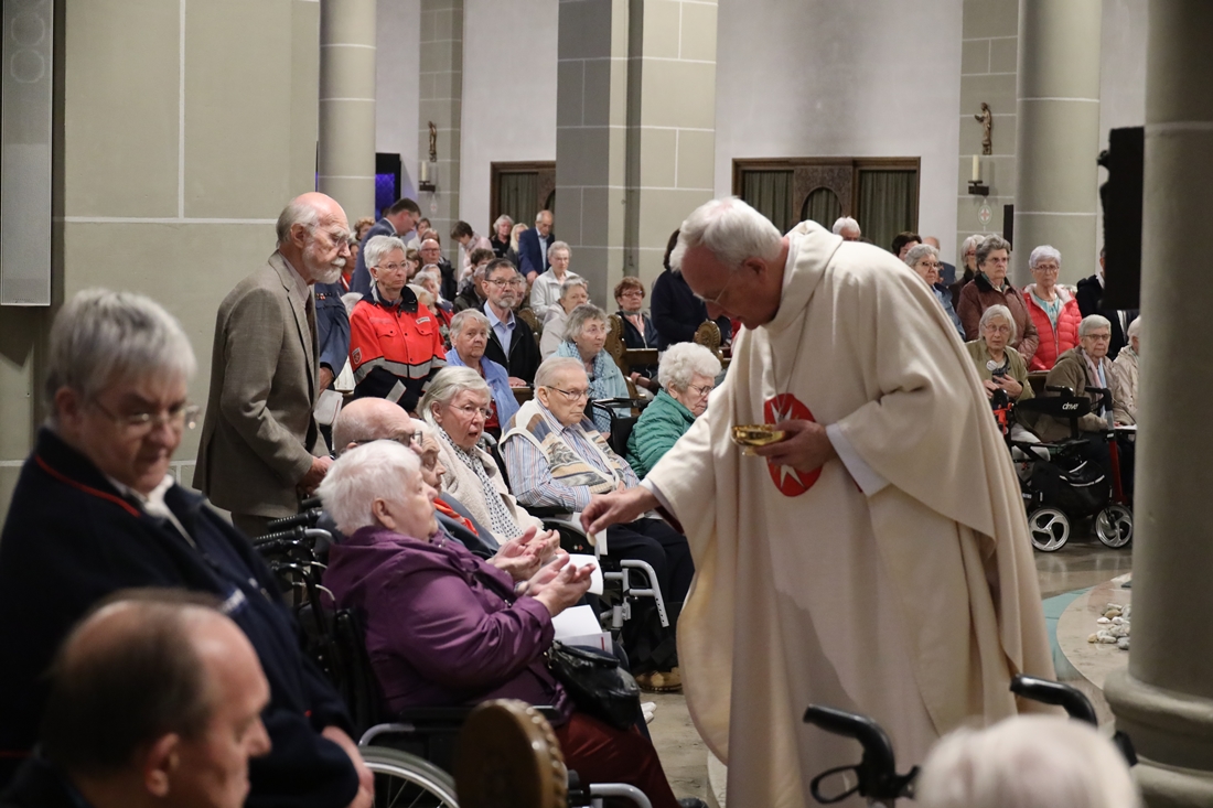 Höhepunkt der Wallfahrt war die Festmesse um 10 Uhr in der Basilika, die von Weihbischof Matthias König aus Paderborn zusammen mit Pastor Mockenhaupt gefeiert wurde. Dabei brachten die Malteser ihre eigene Wallfahrtskerze zum Altar, die von Weihbischof König gesegnet und entzündet wurde – ein sichtbares Zeichen des gemeinsamen Glaubenswegs.