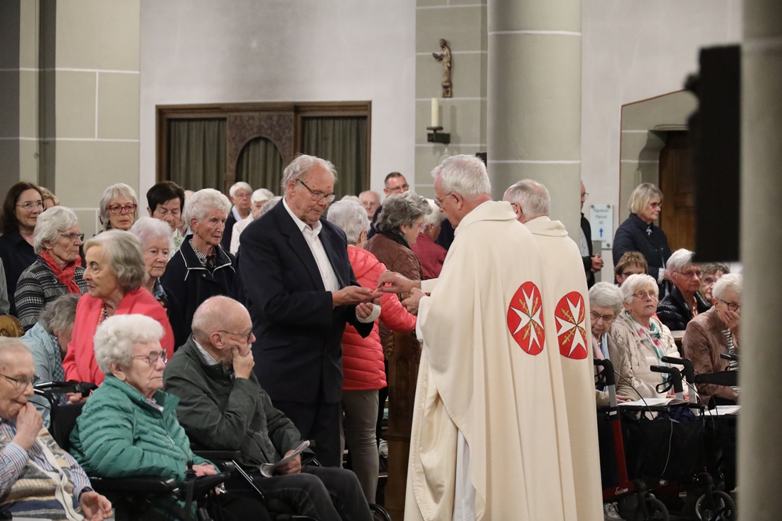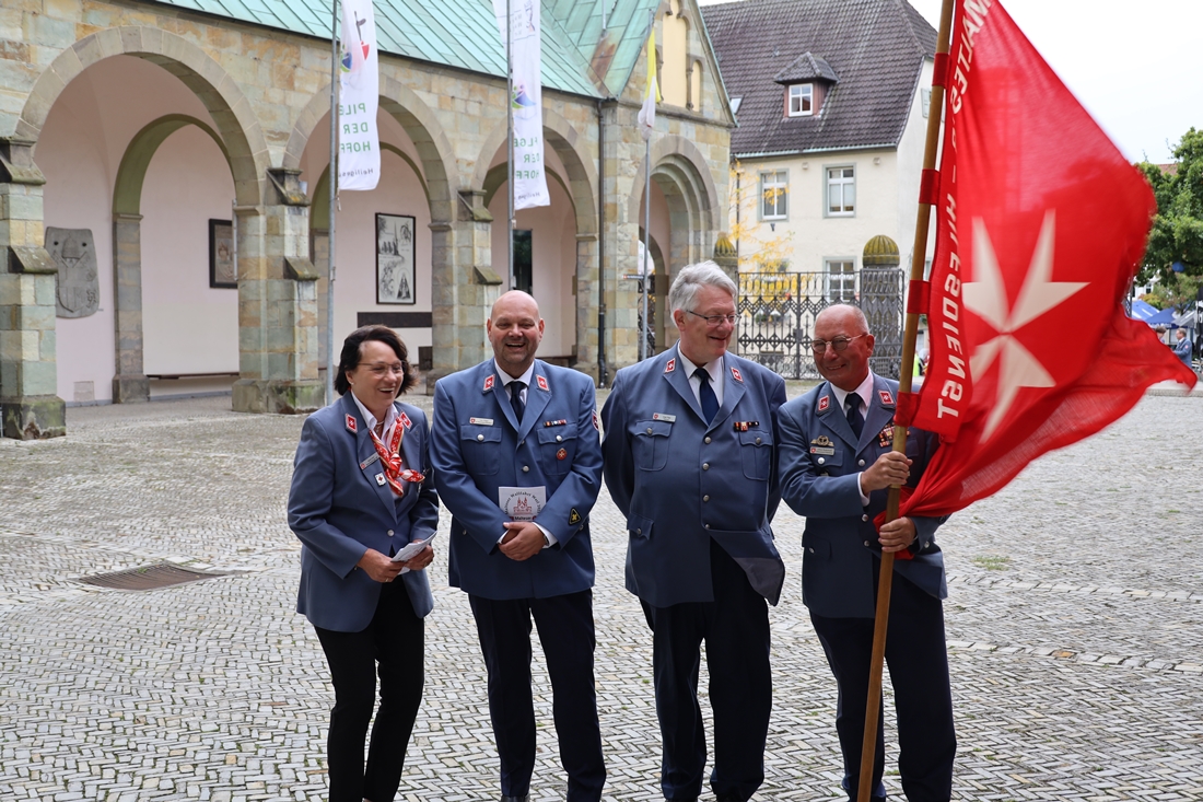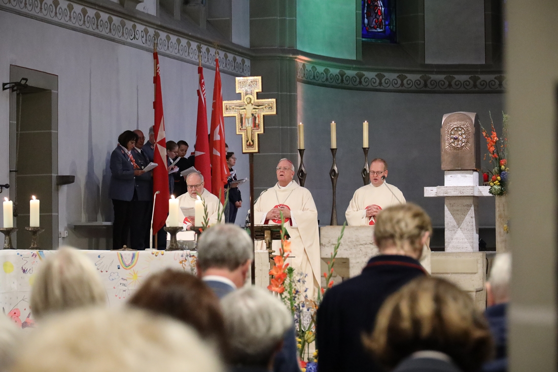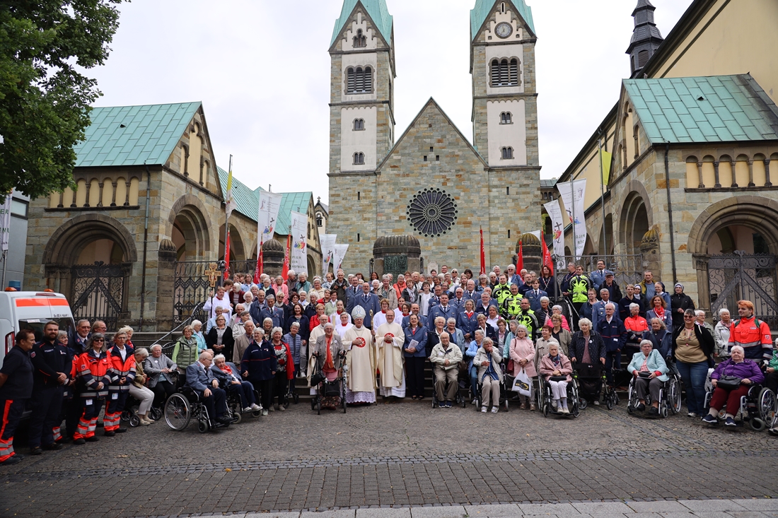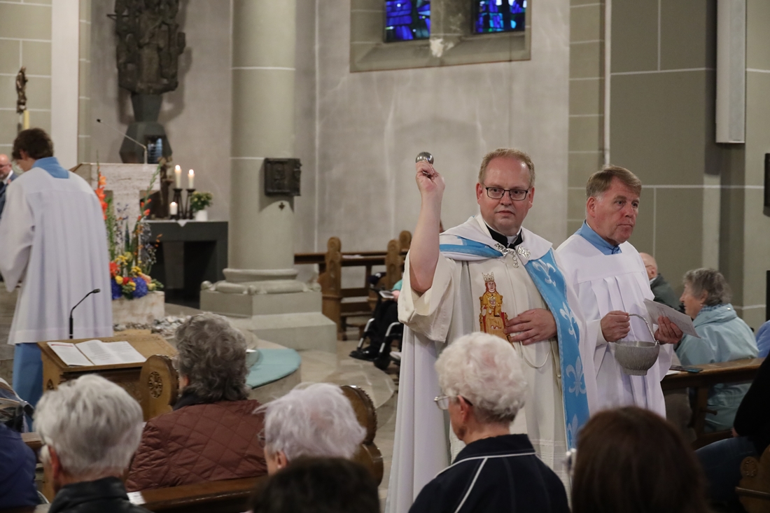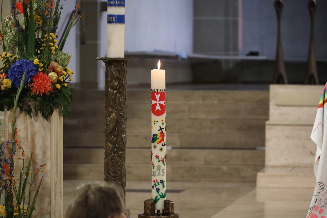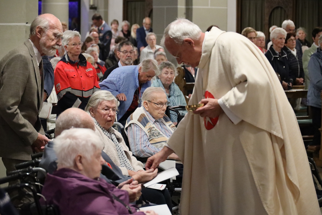 Höhepunkt der Wallfahrt war die Festmesse um 10 Uhr in der Basilika, die von Weihbischof Matthias König aus Paderborn zusammen mit Pastor Mockenhaupt gefeiert wurde. Dabei brachten die Malteser ihre eigene Wallfahrtskerze zum Altar, die von Weihbischof König gesegnet und entzündet wurde – ein sichtbares Zeichen des gemeinsamen Glaubenswegs.