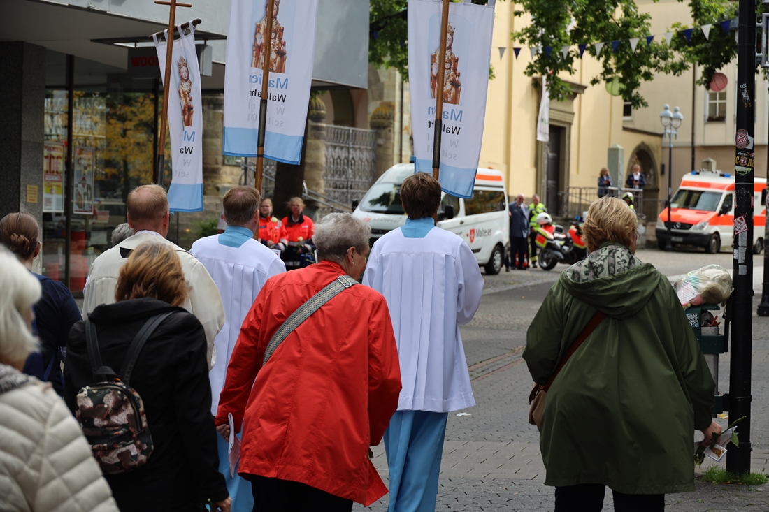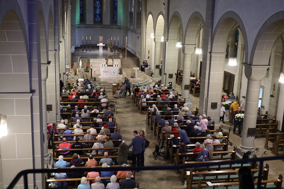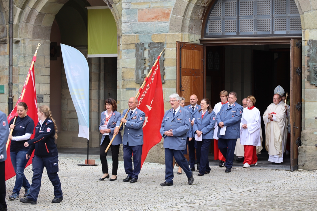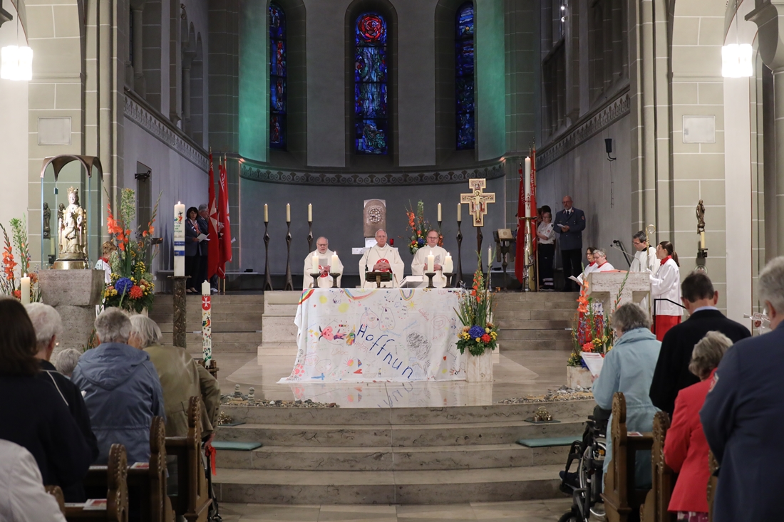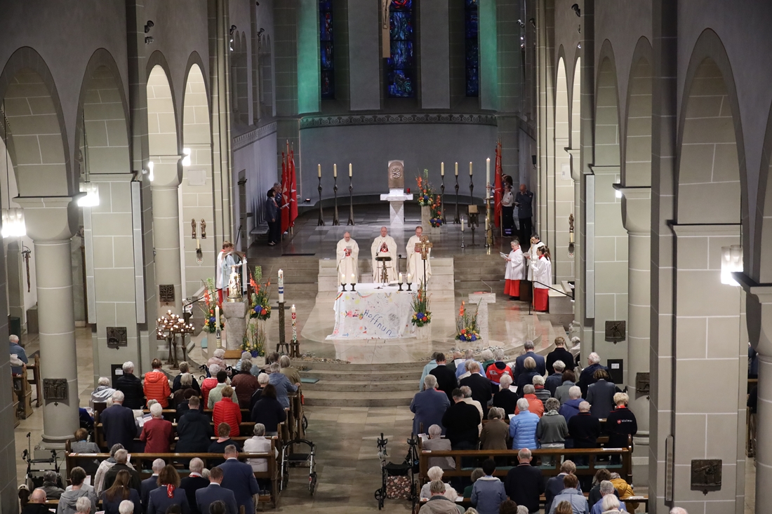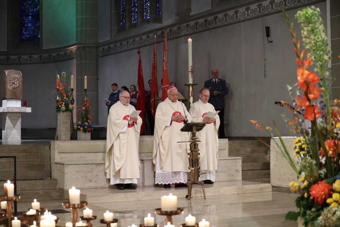 Höhepunkt der Wallfahrt war die Festmesse um 10 Uhr in der Basilika, die von Weihbischof Matthias König aus Paderborn zusammen mit Pastor Mockenhaupt gefeiert wurde. Dabei brachten die Malteser ihre eigene Wallfahrtskerze zum Altar, die von Weihbischof König gesegnet und entzündet wurde – ein sichtbares Zeichen des gemeinsamen Glaubenswegs.