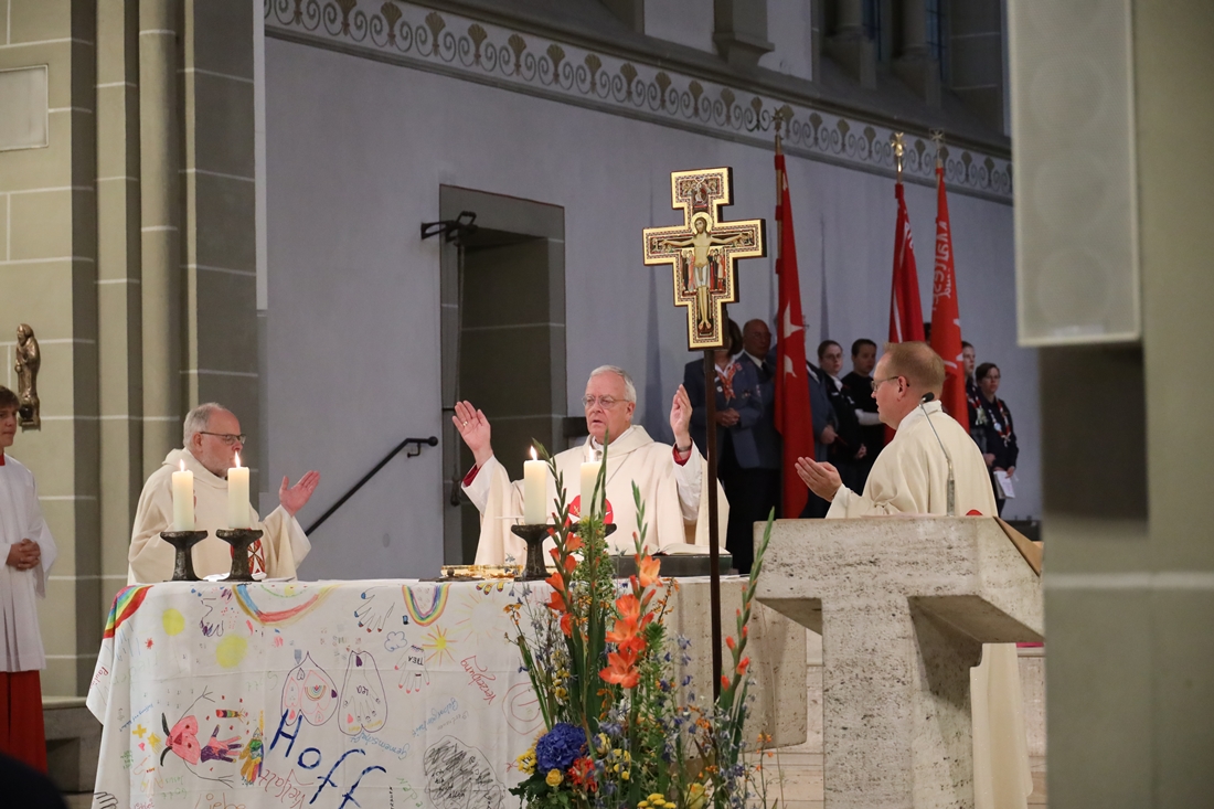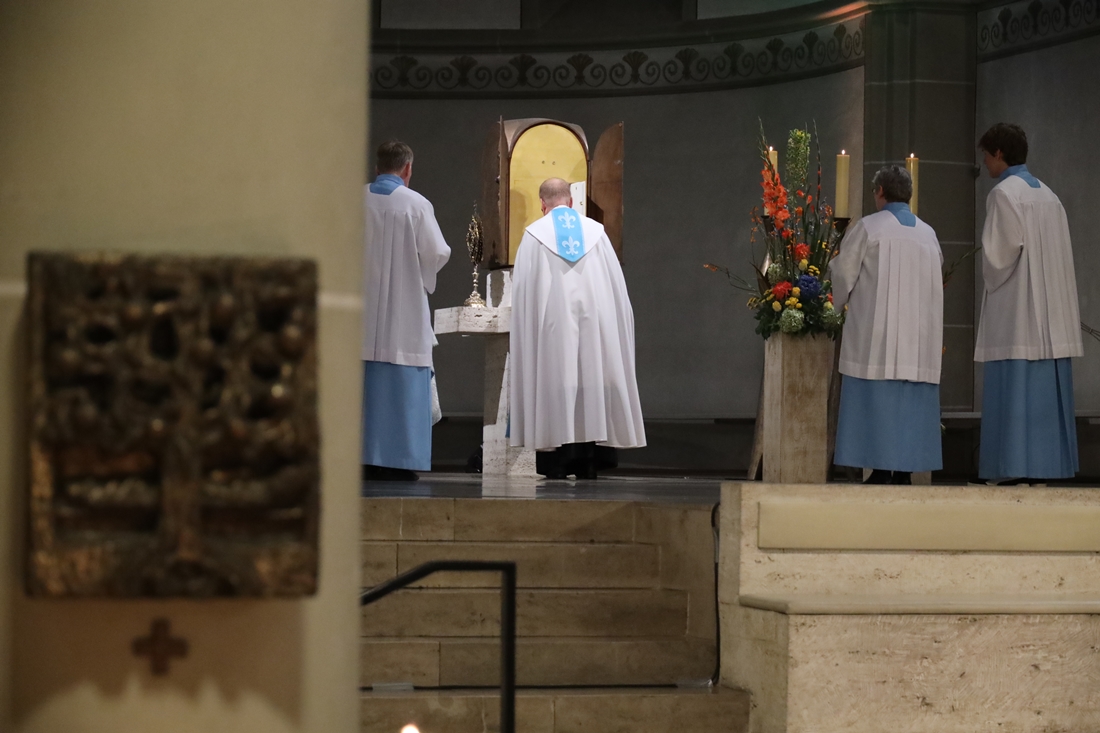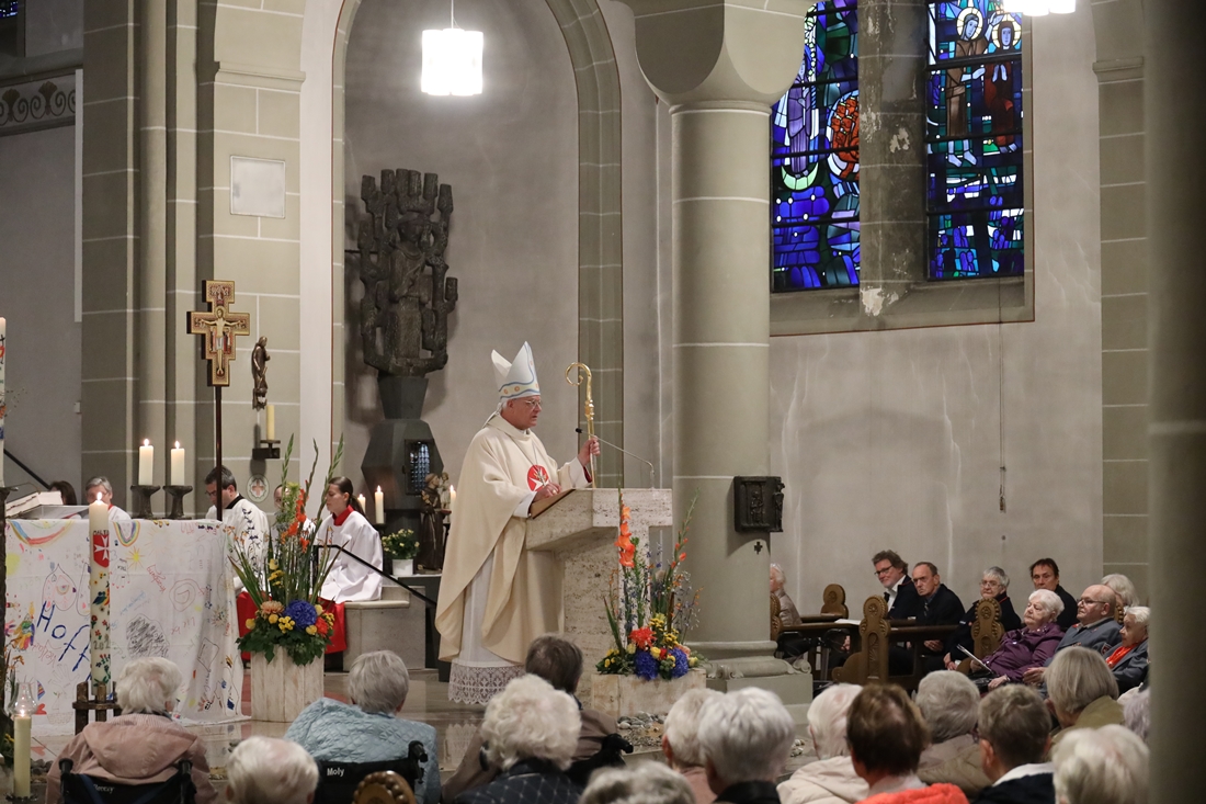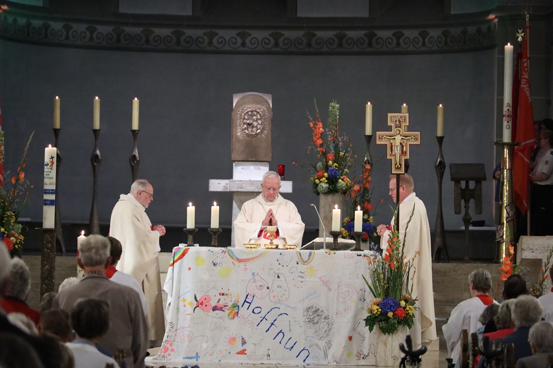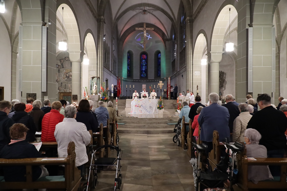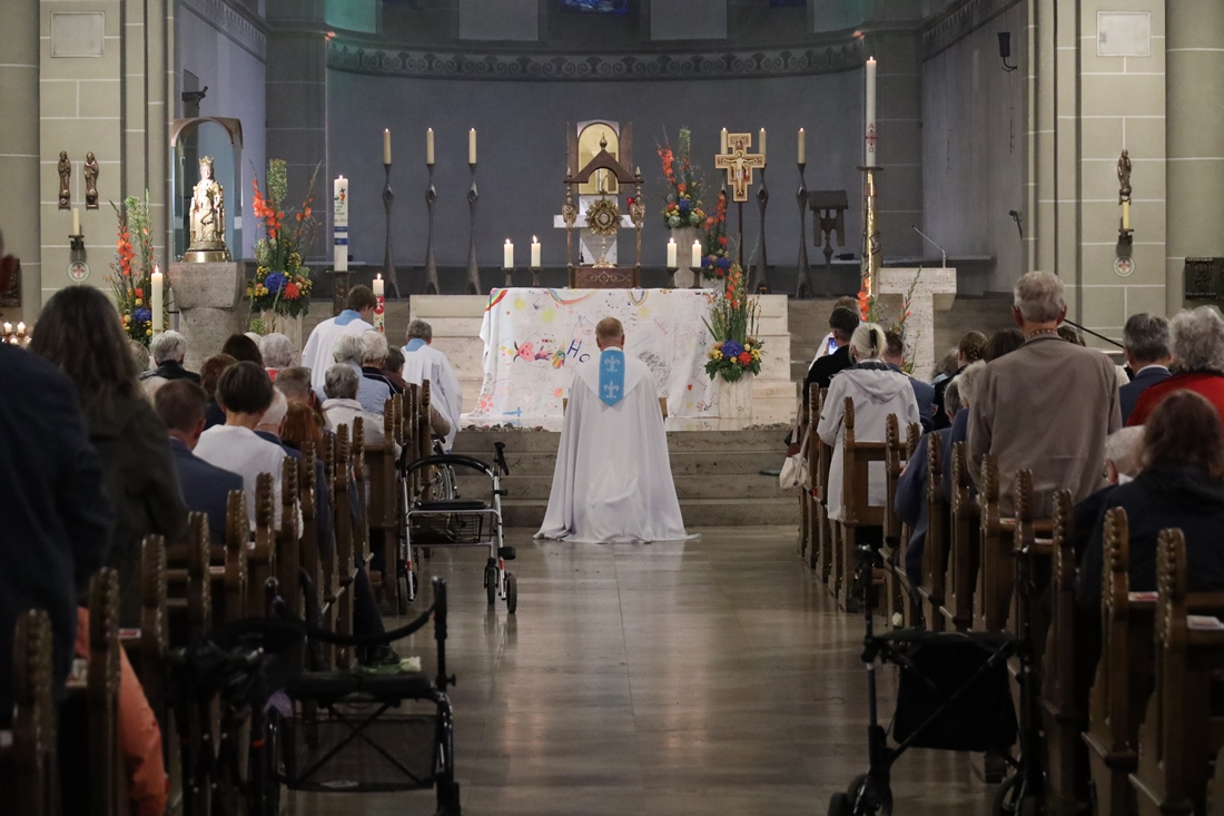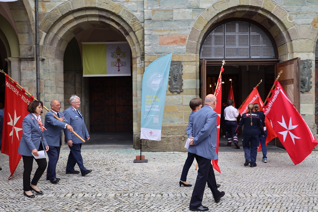 Höhepunkt der Wallfahrt war die Festmesse um 10 Uhr in der Basilika, die von Weihbischof Matthias König aus Paderborn zusammen mit Pastor Mockenhaupt gefeiert wurde. Dabei brachten die Malteser ihre eigene Wallfahrtskerze zum Altar, die von Weihbischof König gesegnet und entzündet wurde – ein sichtbares Zeichen des gemeinsamen Glaubenswegs.