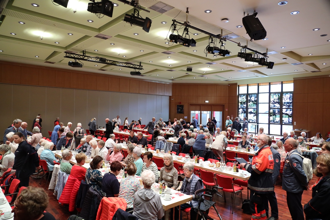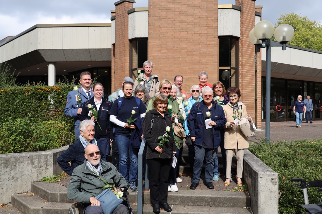 Im Anschluss an den Gottesdienst versammelten sich die Teilnehmenden zu einem großen Gruppenfoto, bevor sie sich zur Stadthalle aufmachten. Manche legten den Weg zu Fuß zurück, andere nutzten die bereitgestellten Busse, damit auch ältere und beeinträchtigte Menschen ohne Mühe teilnehmen konnten. Dort erwartete die Pilger eine kräftige Suppe und Gelegenheit zu Begegnung und Austausch in froher Gemeinschaft.