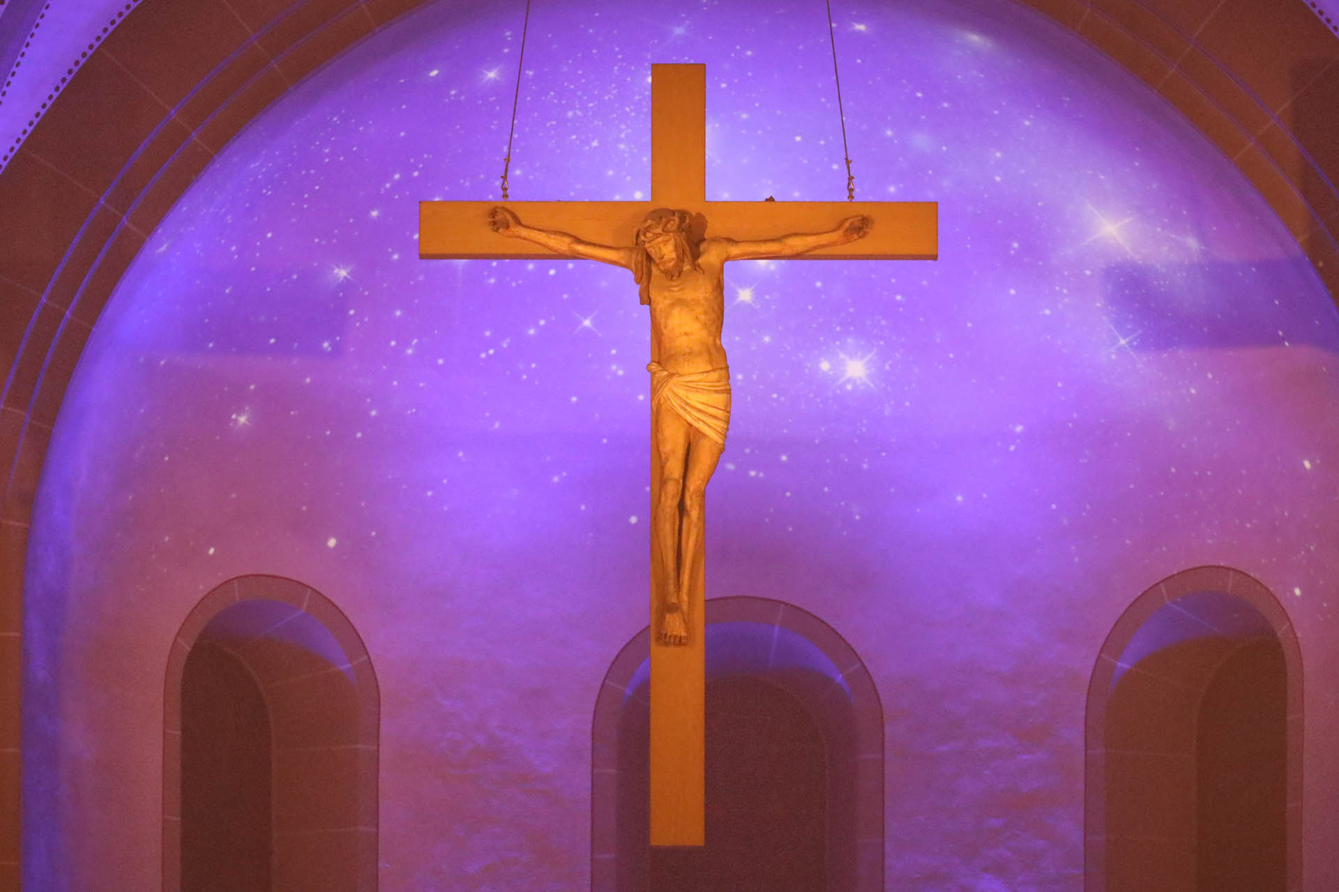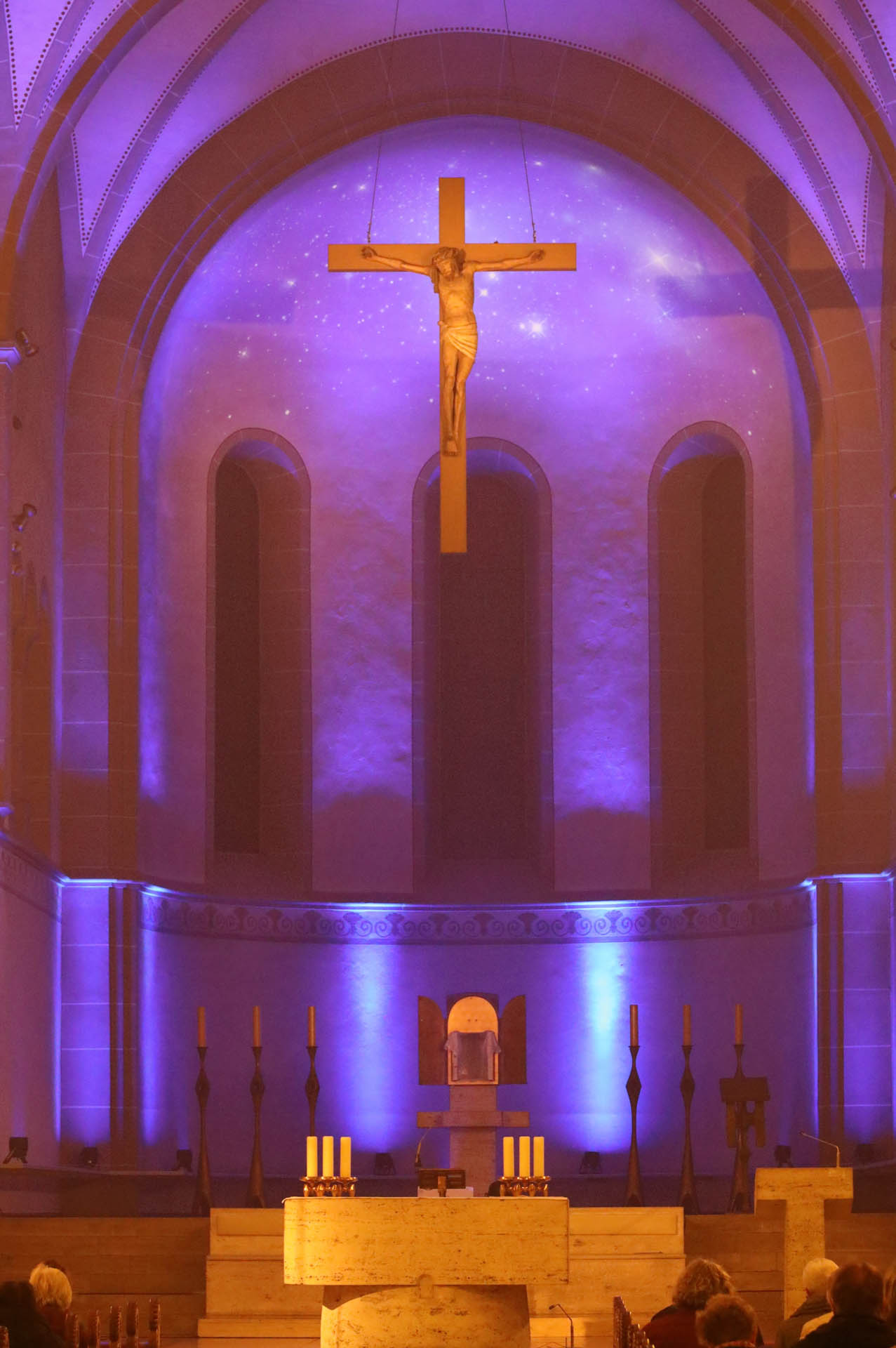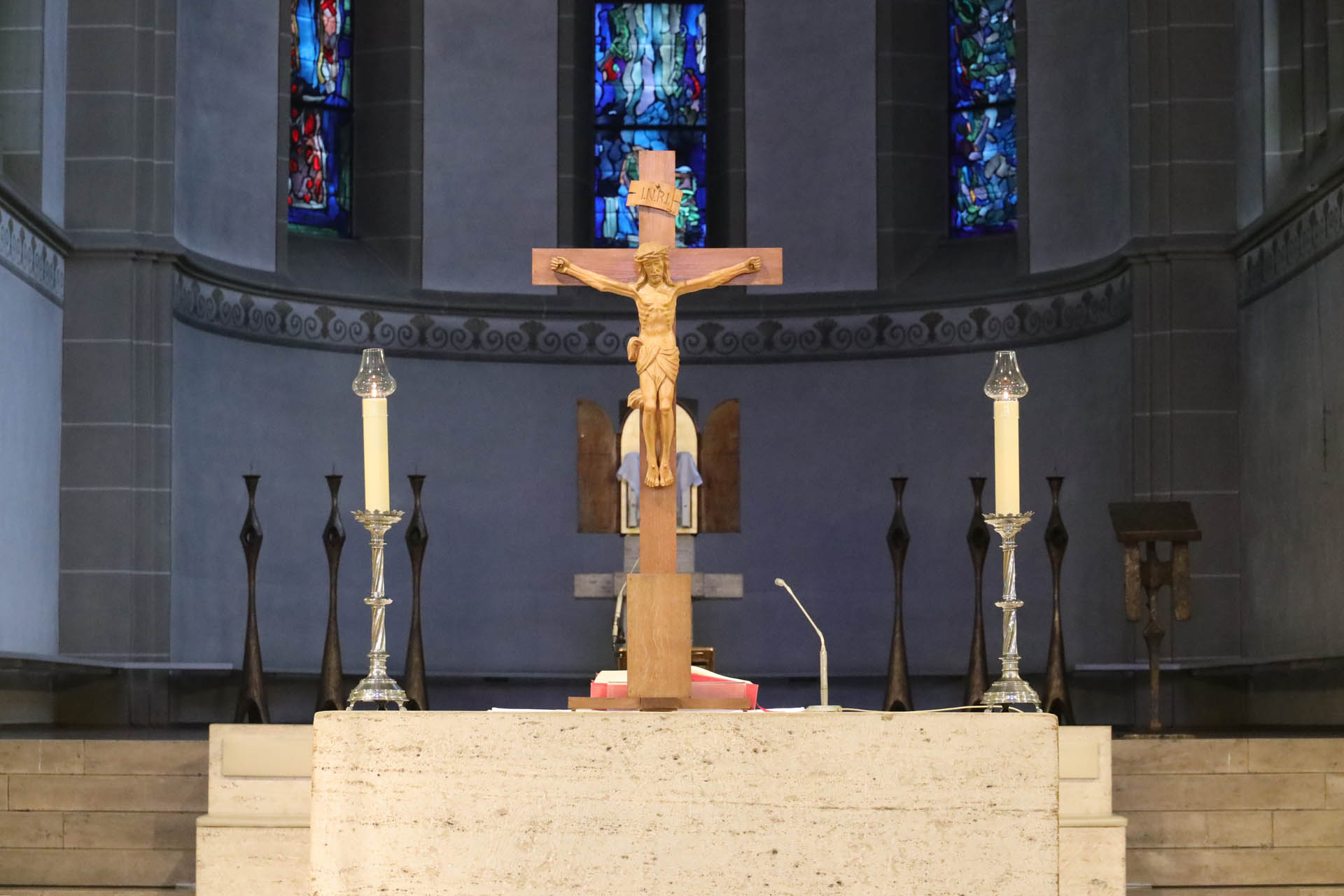 Der Karfreitag setzte einen bewussten Kontrast zum Gründonnerstag. Nach alter Tradition fand keine Eucharistiefeier statt; die Gemeinde versammelte sich stattdessen am Nachmittag zur Gedächtnisfeier vom Leiden und Sterben Christi.