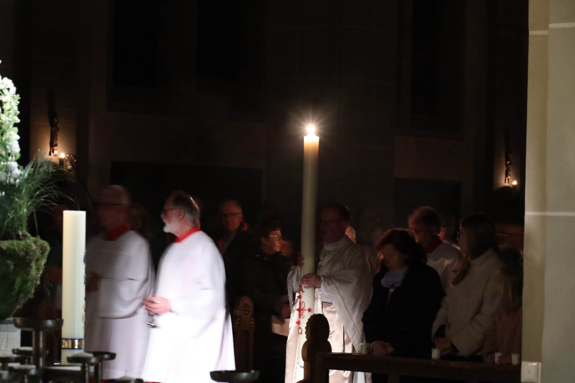 Aus Dunkelheit wurde Helligkeit, aus Stille entstand österliche Freude. Das feierliche „Exsultet“ erinnerte an das heilbringende Wirken Gottes durch alle Zeiten und eröffnete die Gemeinde in die Botschaft der Auferstehung.