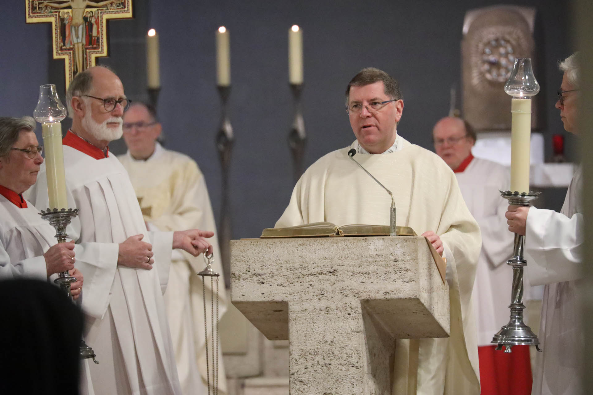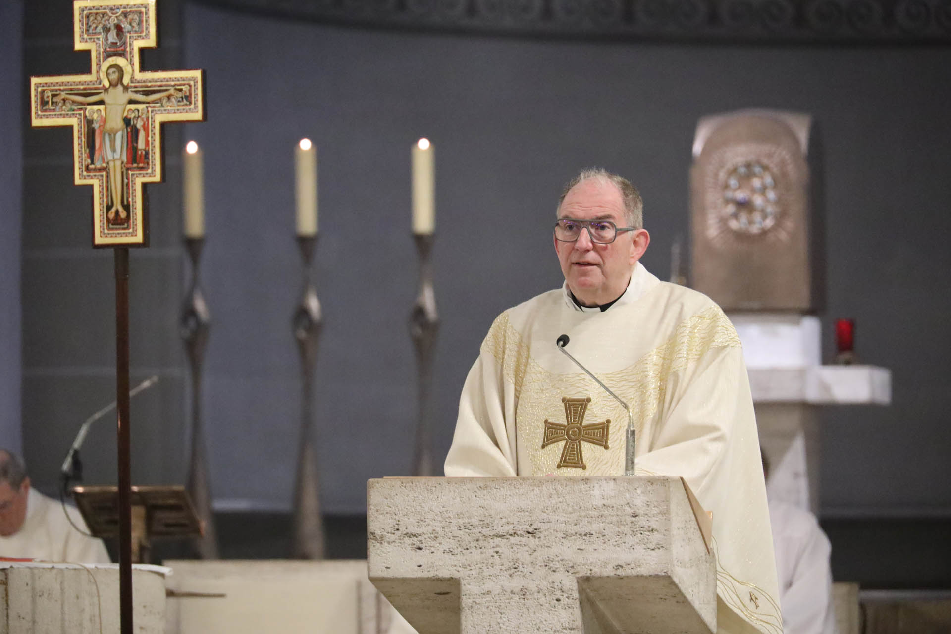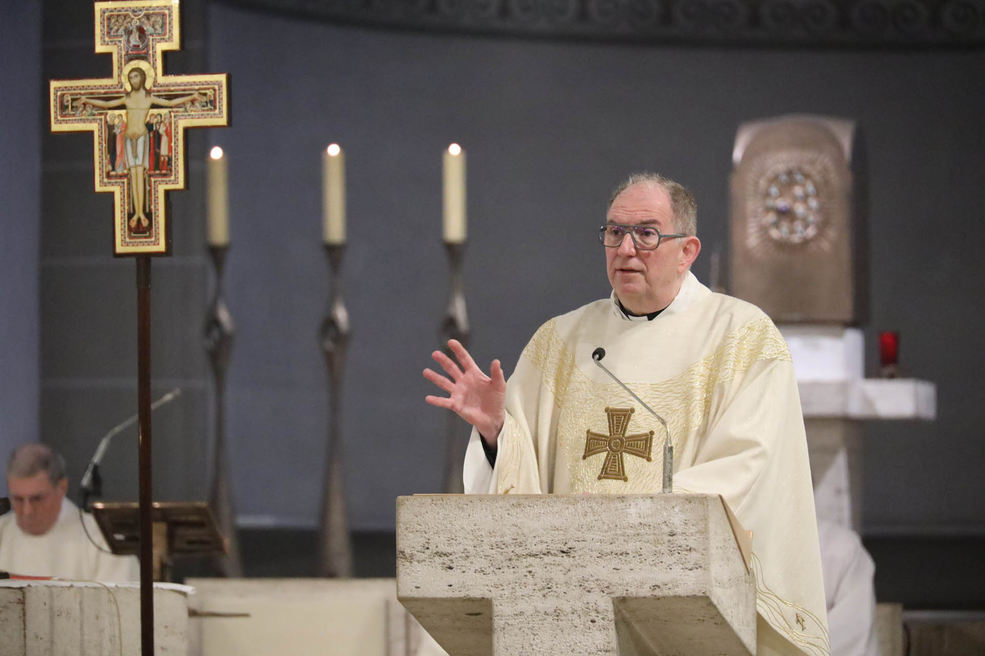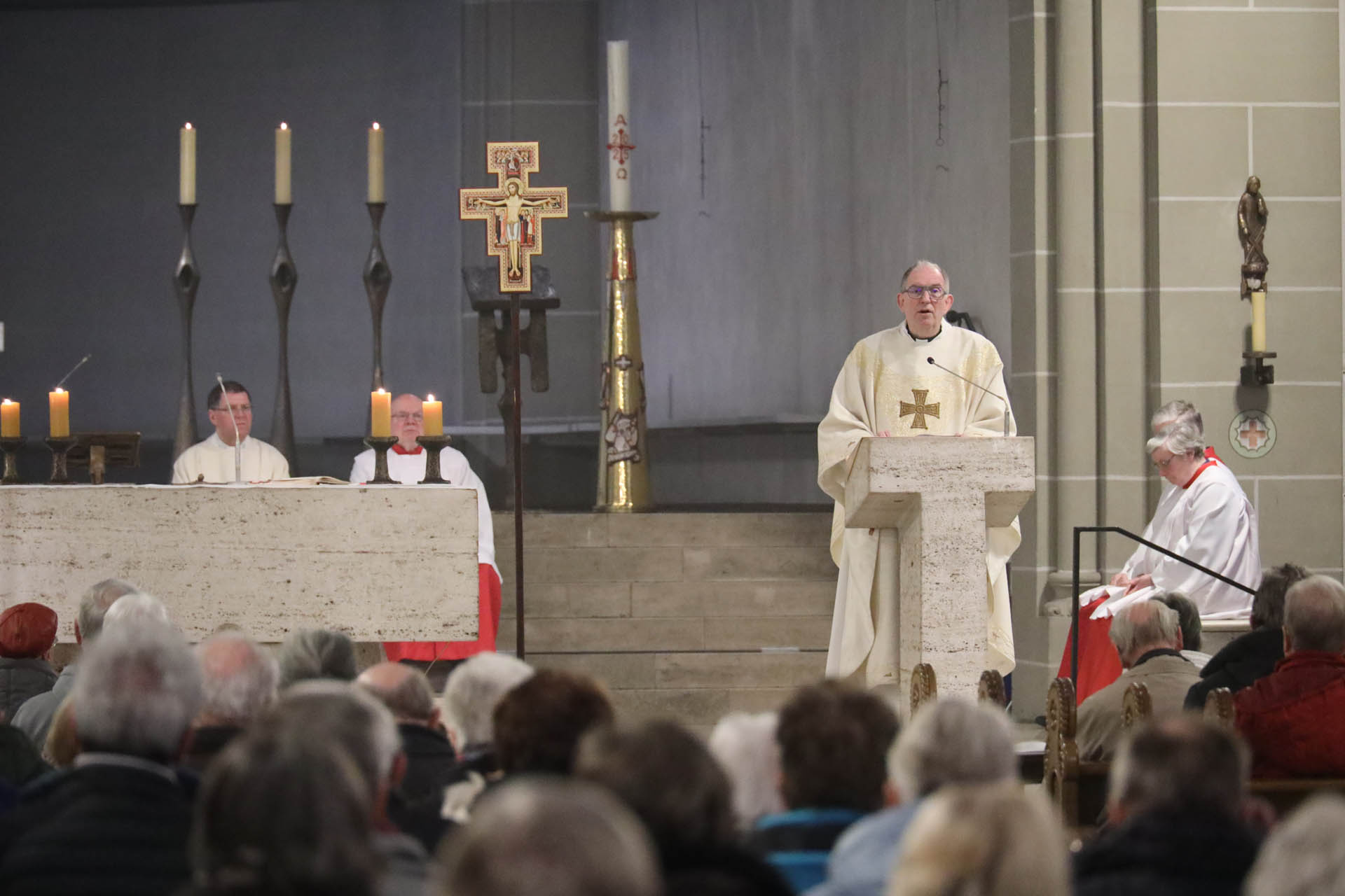 Ausgangspunkt seiner Predigt war der von Udo Markus Bentz angestoßene Transformationsprozess. Die Zahl der Pastoralen Räume soll deutlich reduziert, Pfarreien neu geordnet und Leitungsverantwortung anders verteilt werden. Künftig werden größere Seelsorgeräume entstehen, mit klaren pastoralen Zentren und vielfältigen Orten kirchlichen Lebens. Ehrenamtliche werden stärker aus ihrer Taufberufung heraus Verantwortung übernehmen, Leitungsmodelle werden neu gedacht.
