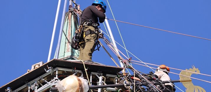 Sehr interessant anzuschauen war die gestrige, imposante Anbringung des Turmkreuzes auf dem Dachreiter der Basilika. Die Firma Seilkonzept hat bei sonnigem Wetter das restaurierte Kreuz an seinen angestammten Platz gesetzt.