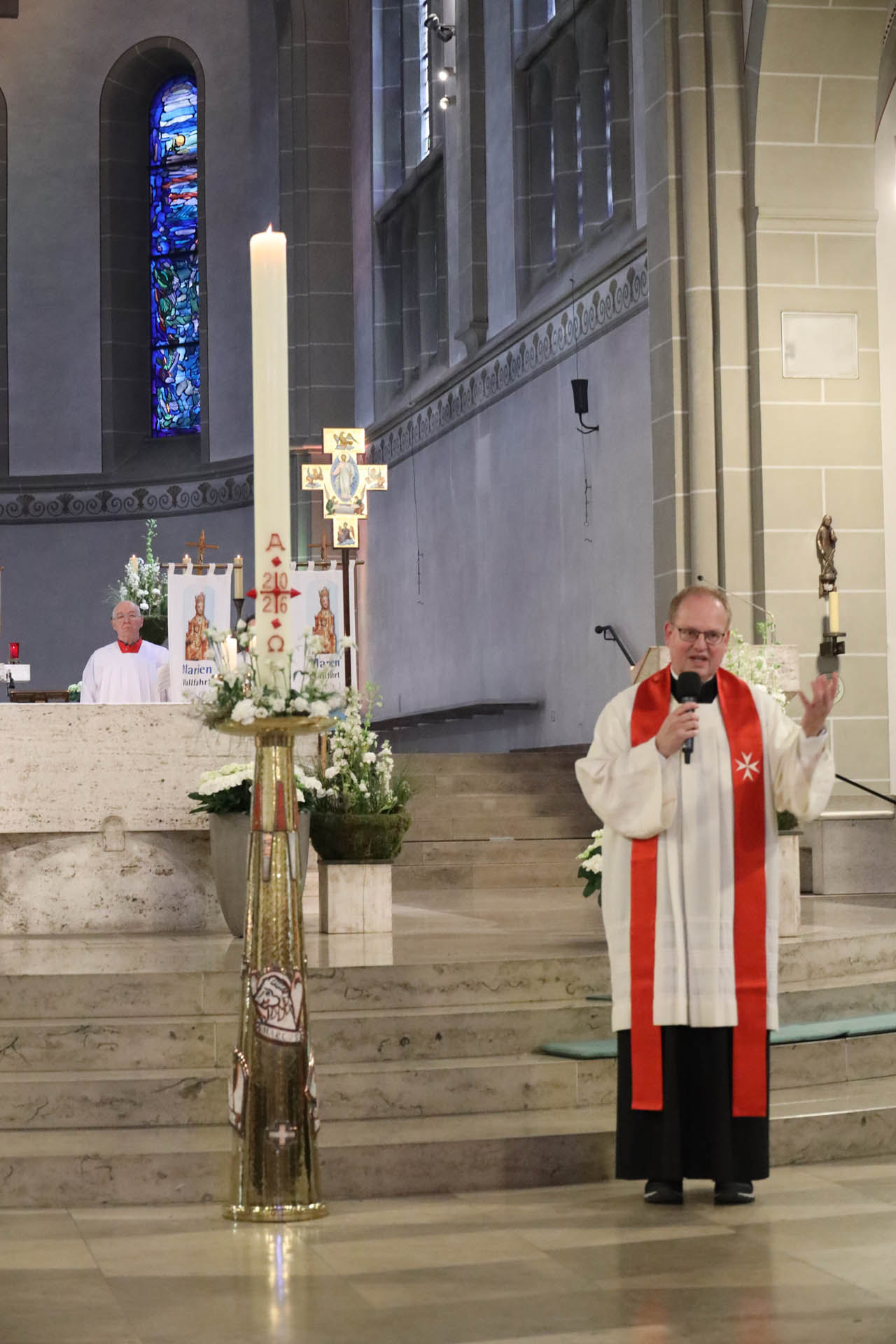 Im Rahmen dieser Abschlussmesse um 16 Uhr wurde der stellvertretende Bezirksbeauftragte Jürgen Plöger von Wallfahrtsseelsorger Pastor Stephan Mockenhaupt gefirmt.