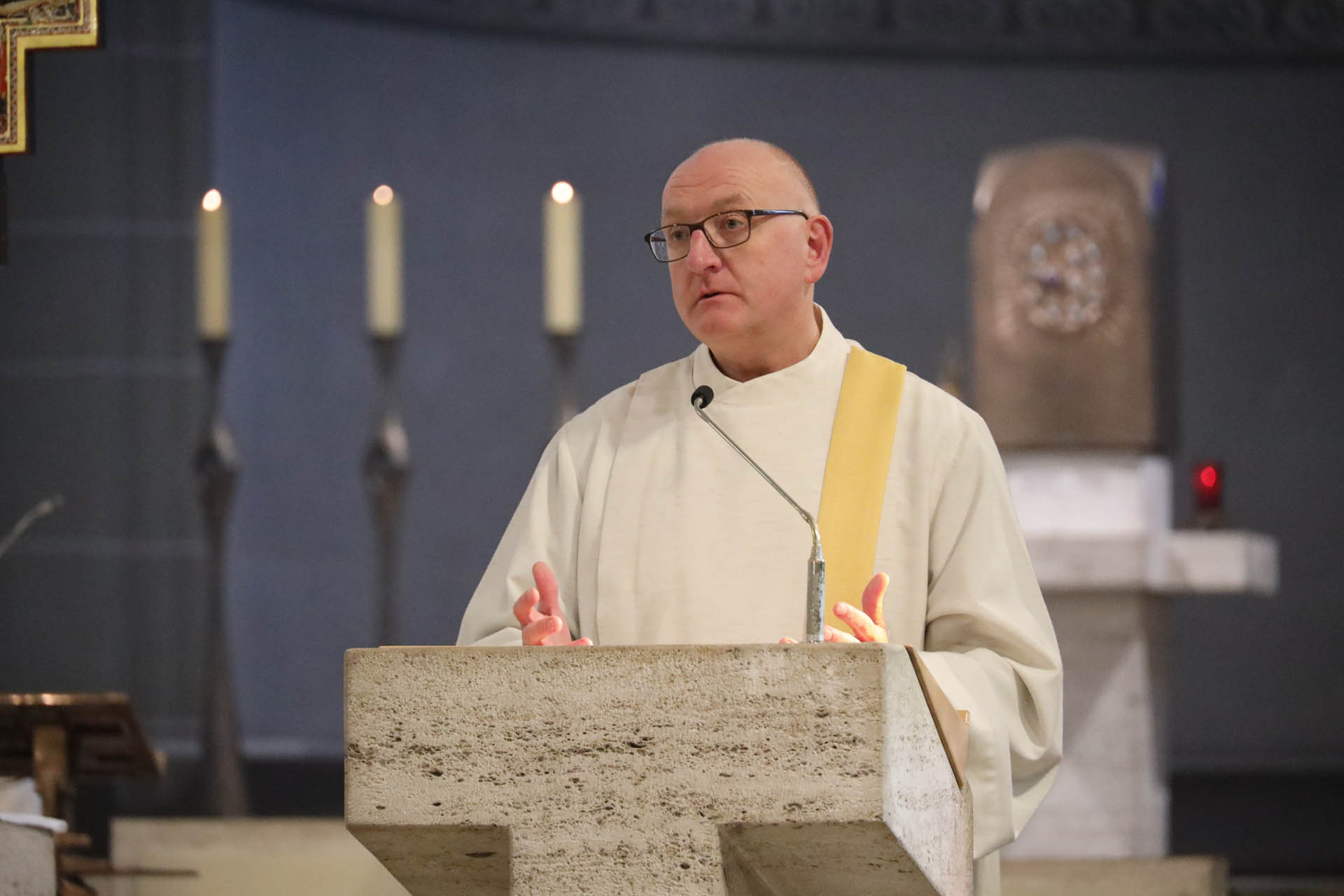 Ausgehend vom Wort des Evangeliums „Diese Rede ist hart. Wer kann sie hören?“ (Joh 6,60) nahm Markus Ende die gegenwärtigen Veränderungsprozesse in den Blick. Besonders die sogenannten Immobilienprozesse im Erzbistum Paderborn führen vielerorts zu schmerzhaften Entscheidungen. Kirchen, Pfarrheime und vertraute Orte stehen auf dem Prüfstand.