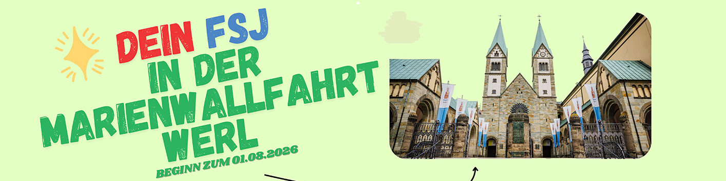 Das FSJ ist eine gute Möglichkeit für alle, die sich zwischen Schulabschluss und Beginn eines Studiums bzw. einer Berufsausbildung in ihren persönlichen Fähigkeiten ausprobieren möchten. Bei uns in der Marienwallfahrt Werl gibt es viele Bereiche sich einzubringen: z.B. in der Zusammenarbeit mit dem Wallfahrtsteam, den vielen haupt- und ehrenamtlichen Mitarbeiterinnen und Mitarbeitern, im Kontakt mit Besucherinnen und Besuchern des Pilgerbüros und des Wallfahrtsortes sowie in der Unterstützung verschiedenster Projekte (z.B. SocialMedia, Lego, Wallfahrtstage etc.). Der Freiwilligendienst im FSJ ist eine Vollzeittätigkeit und die perfekte Vorbereitung für einen Beruf im sozialen Bereich.