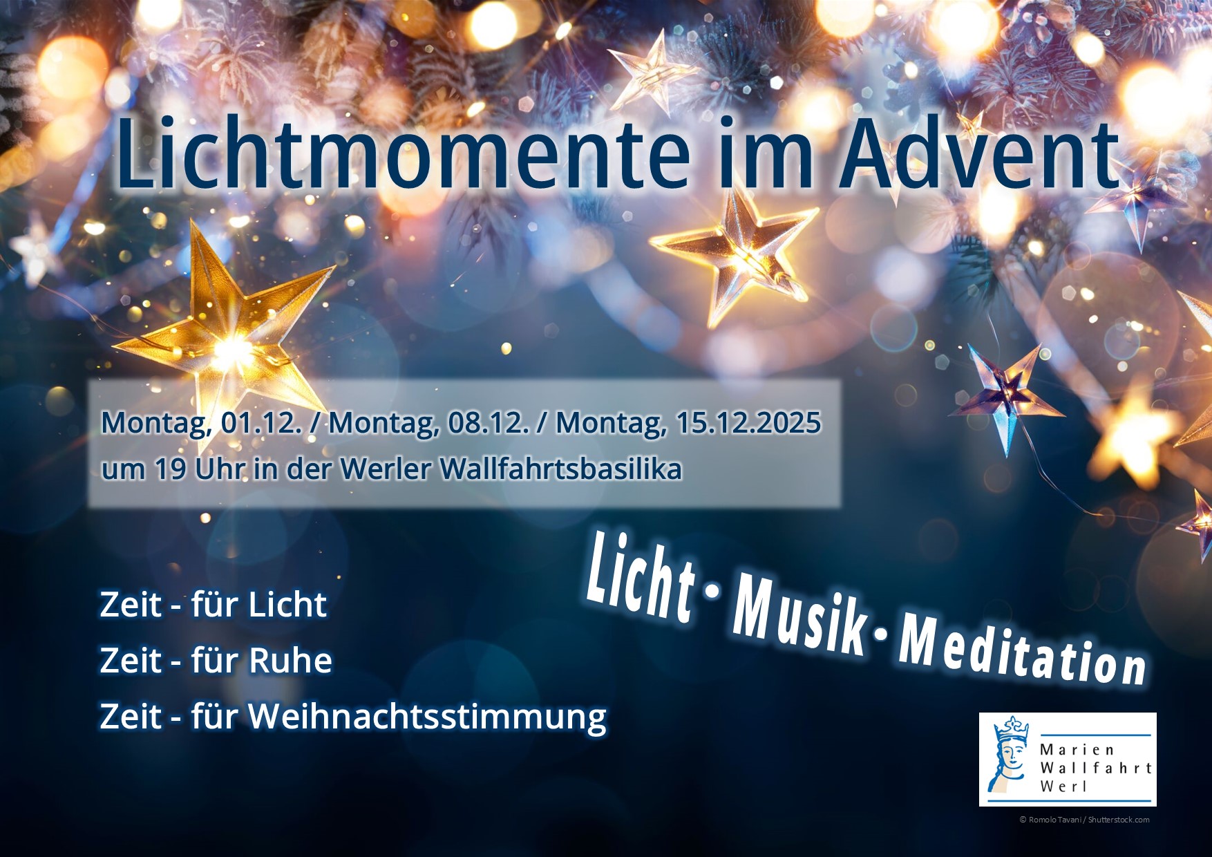 Am Montag, den 01.12., 08.12. und den 15.12.25 jeweils um 19.00 Uhr findet die Abendmeditation „Lichtmomente im Advent“ in der Wallfahrtsbasilika statt.